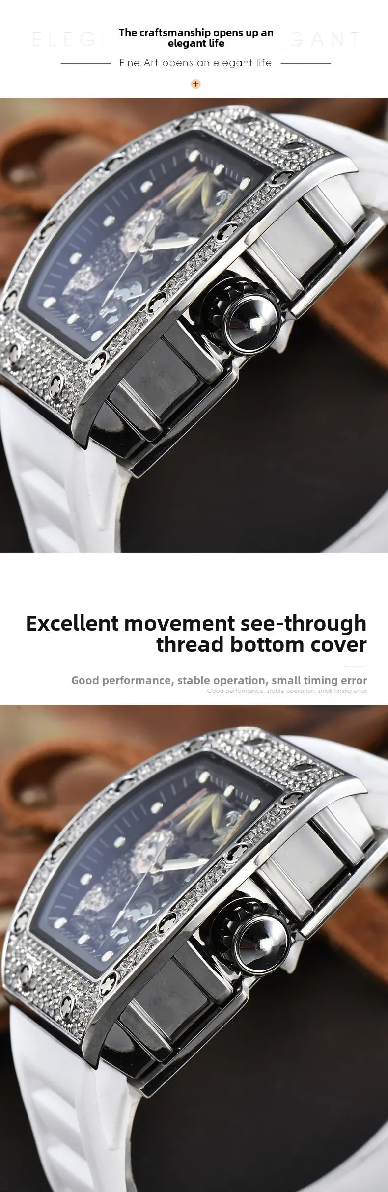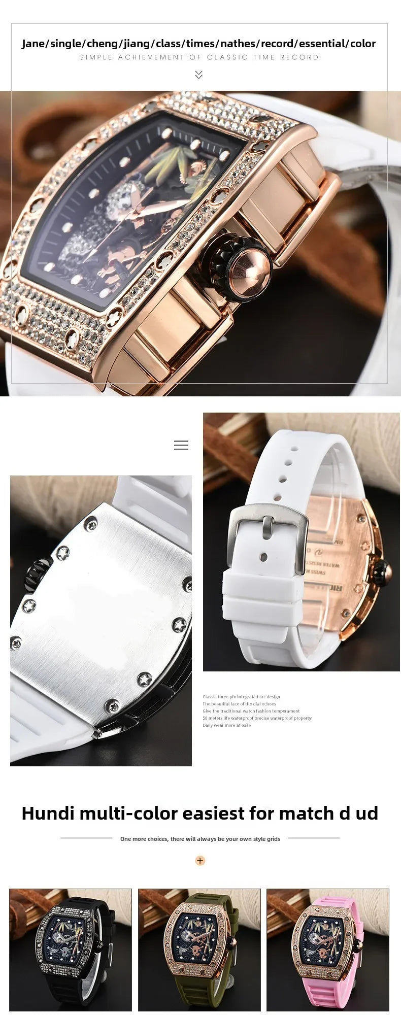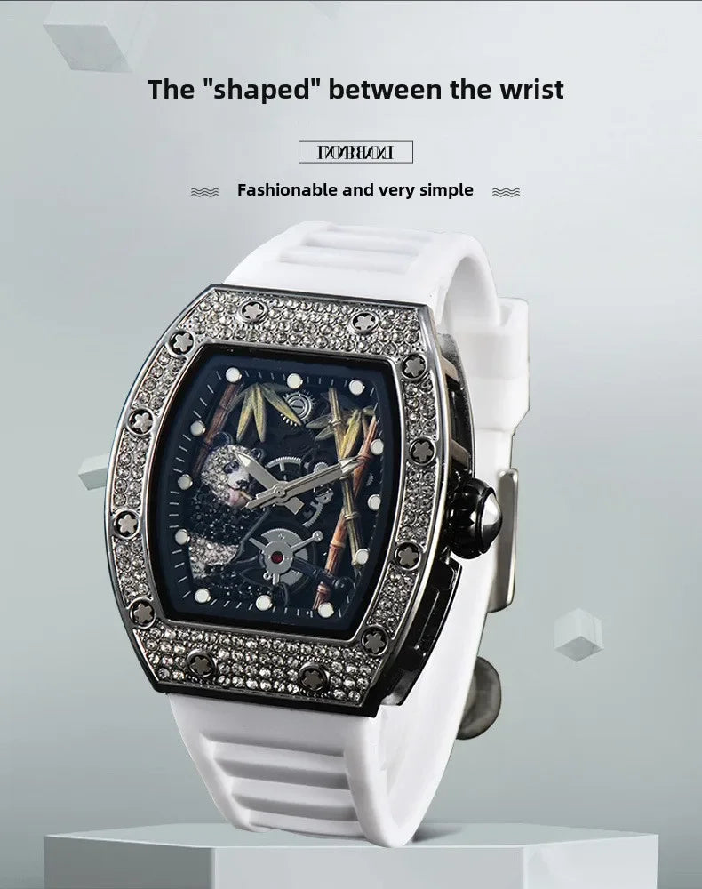 ساعة كوارتز فاخرة ورياضية، مرصعة بـ 25 ماسة، تتميز بميناء مجوف من خشب الباندا. ساعة رياضية أنيقة وعصرية.