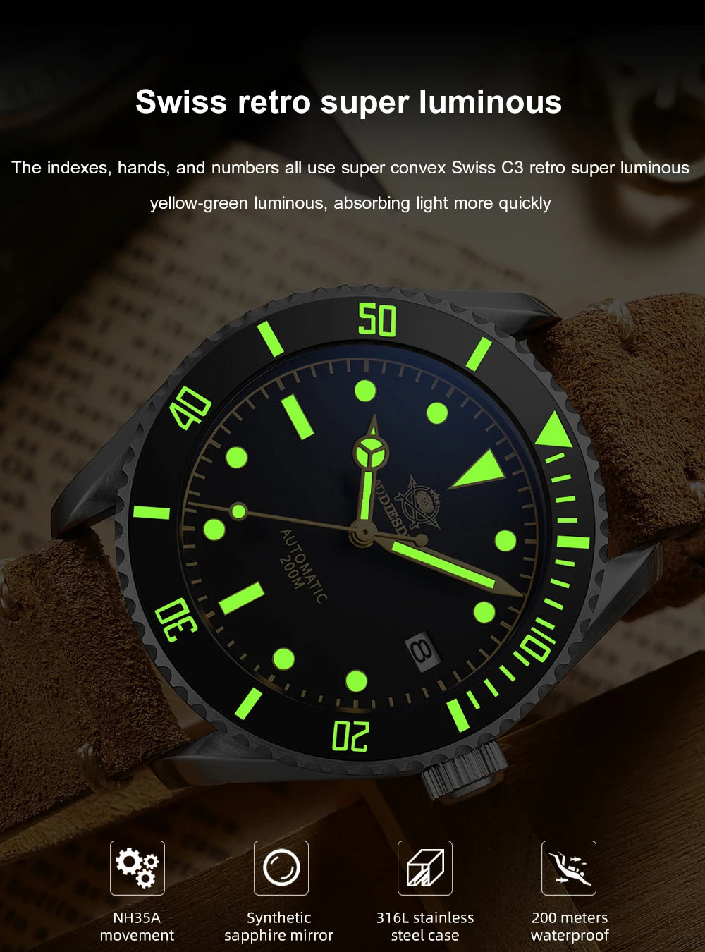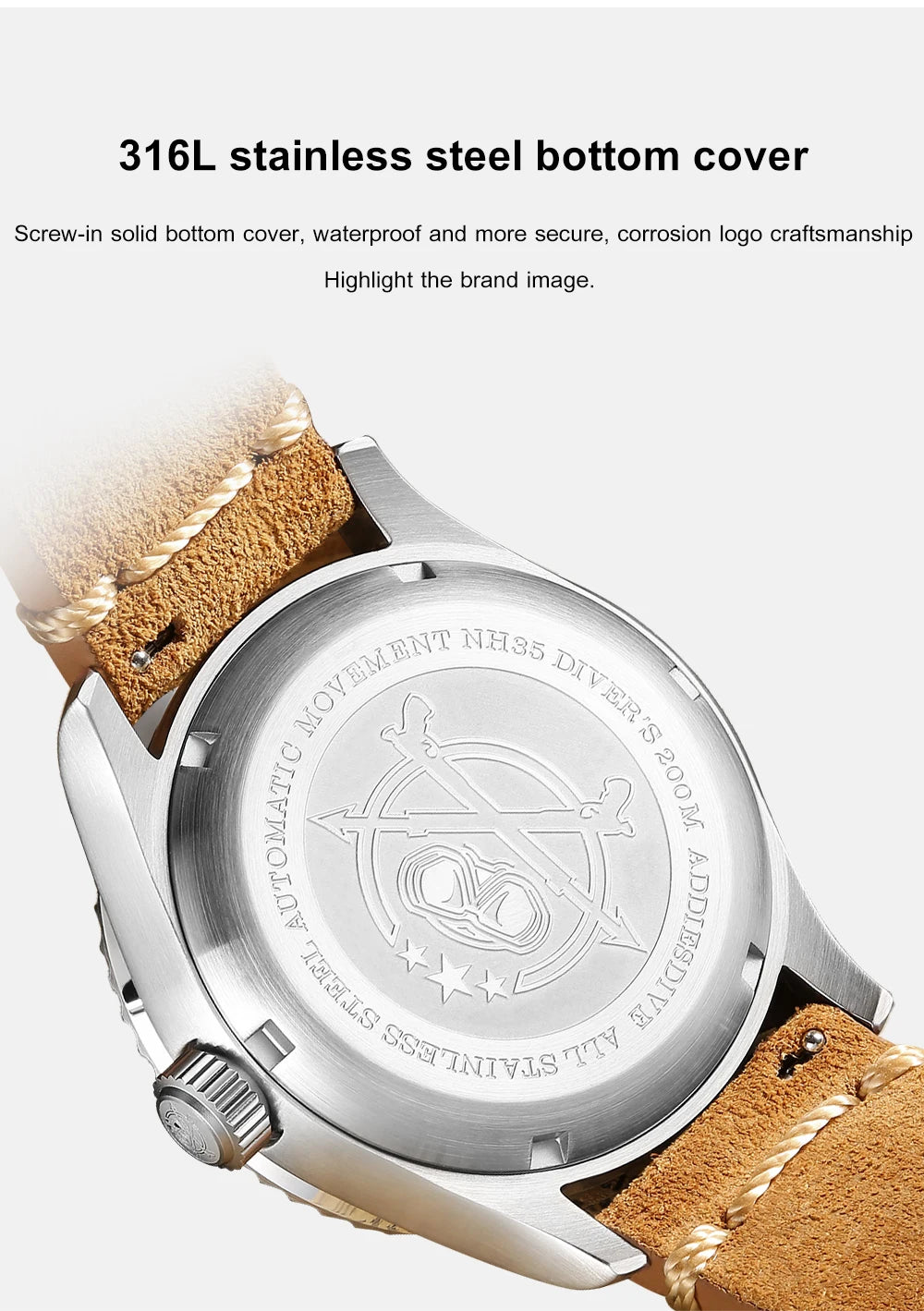 ساعة ADDIESDIVE الجلدية، بتصميمها العصري والعملي، مقاومة للماء وميكانيكيتها الأوتوماتيكية الفولاذية. ساعة رجالية كاجوال مثالية من أوروبا وأمريكا.