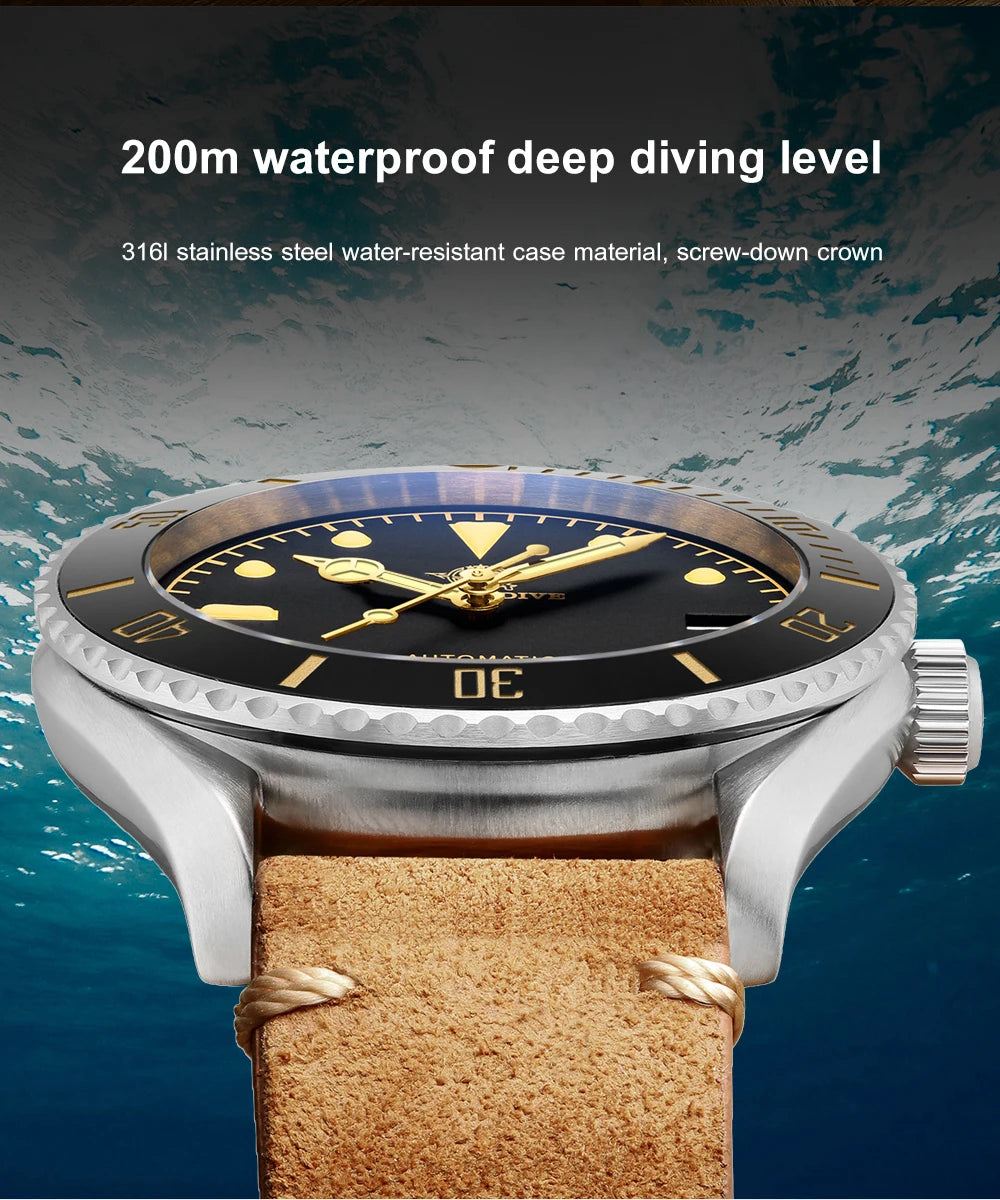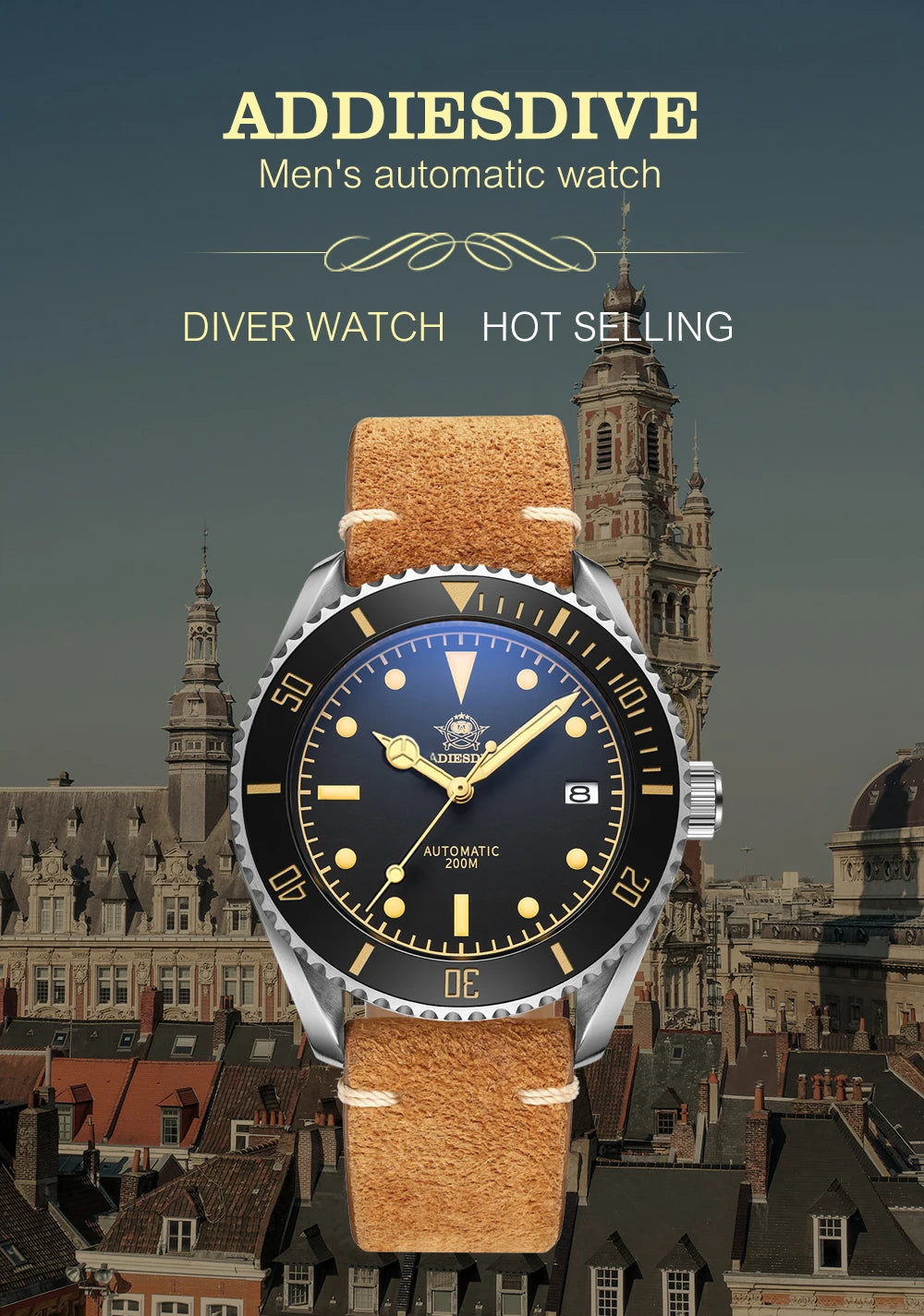 ساعة يد ADDIESDIVE Business Vintage Leather مقاومة للماء أوتوماتيكية ميكانيكية من الفولاذ للرجال ساعة كاجوال أوروبية أمريكية