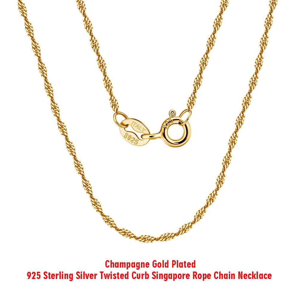 ارتقِ بأناقتك مع هذه القلادة الأنيقة بسلسلة حبلية ملتوية، مصنوعة من فضة إسترلينية فاخرة عيار 925 مطلية بذهب عيار 14 قيراطًا. تمنحك السلسلة الرقيقة بقطر 1.5 مم إطلالة أنيقة خالدة، مثالية للارتداء اليومي أو المناسبات الخاصة.