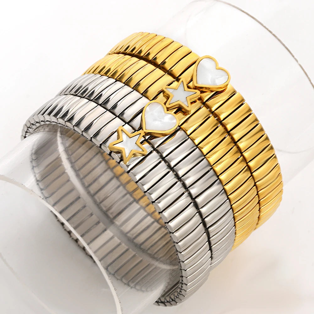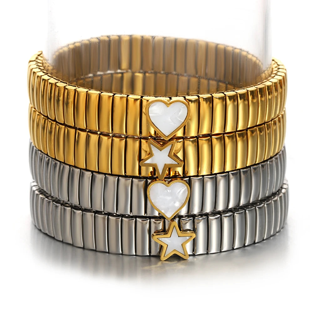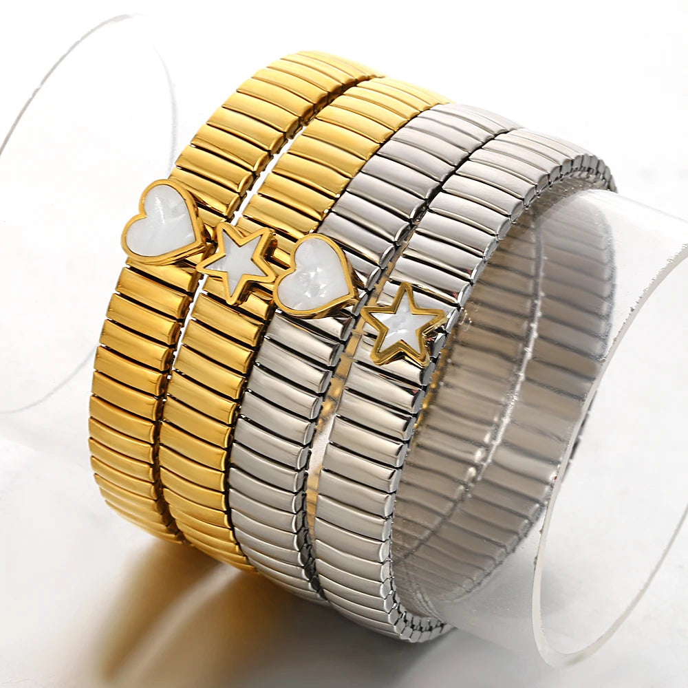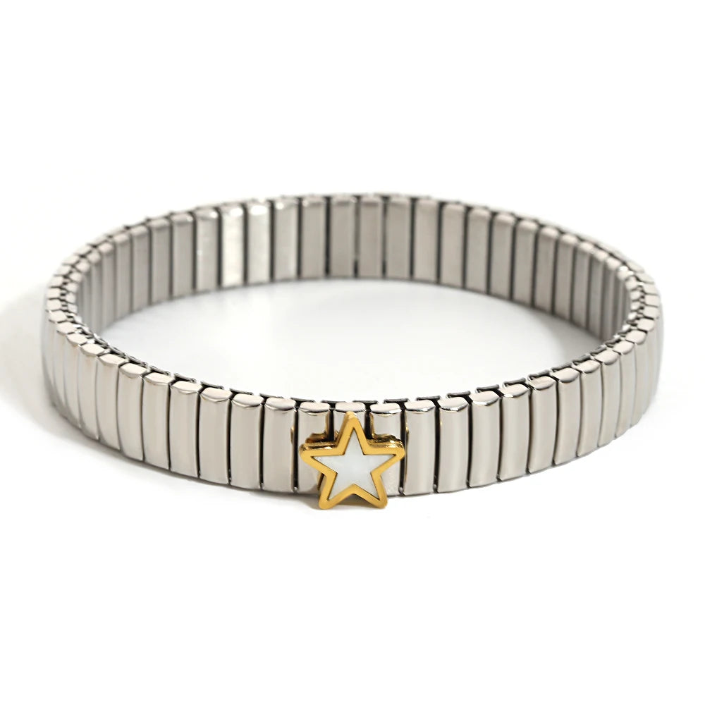 سوار مرن على شكل حلقة حب - سوار من الفولاذ المقاوم للصدأ بنمط نجمة
