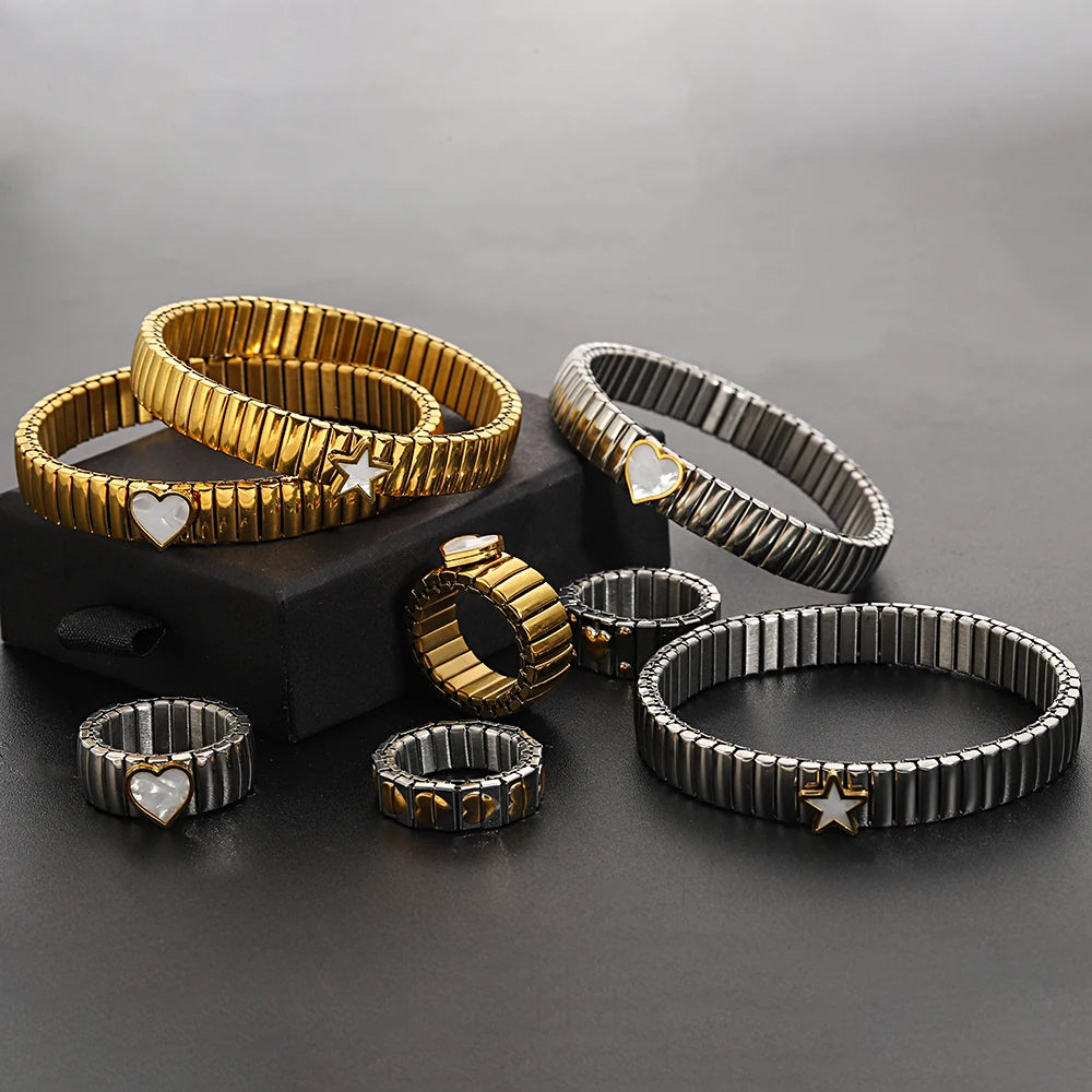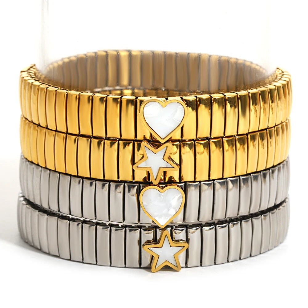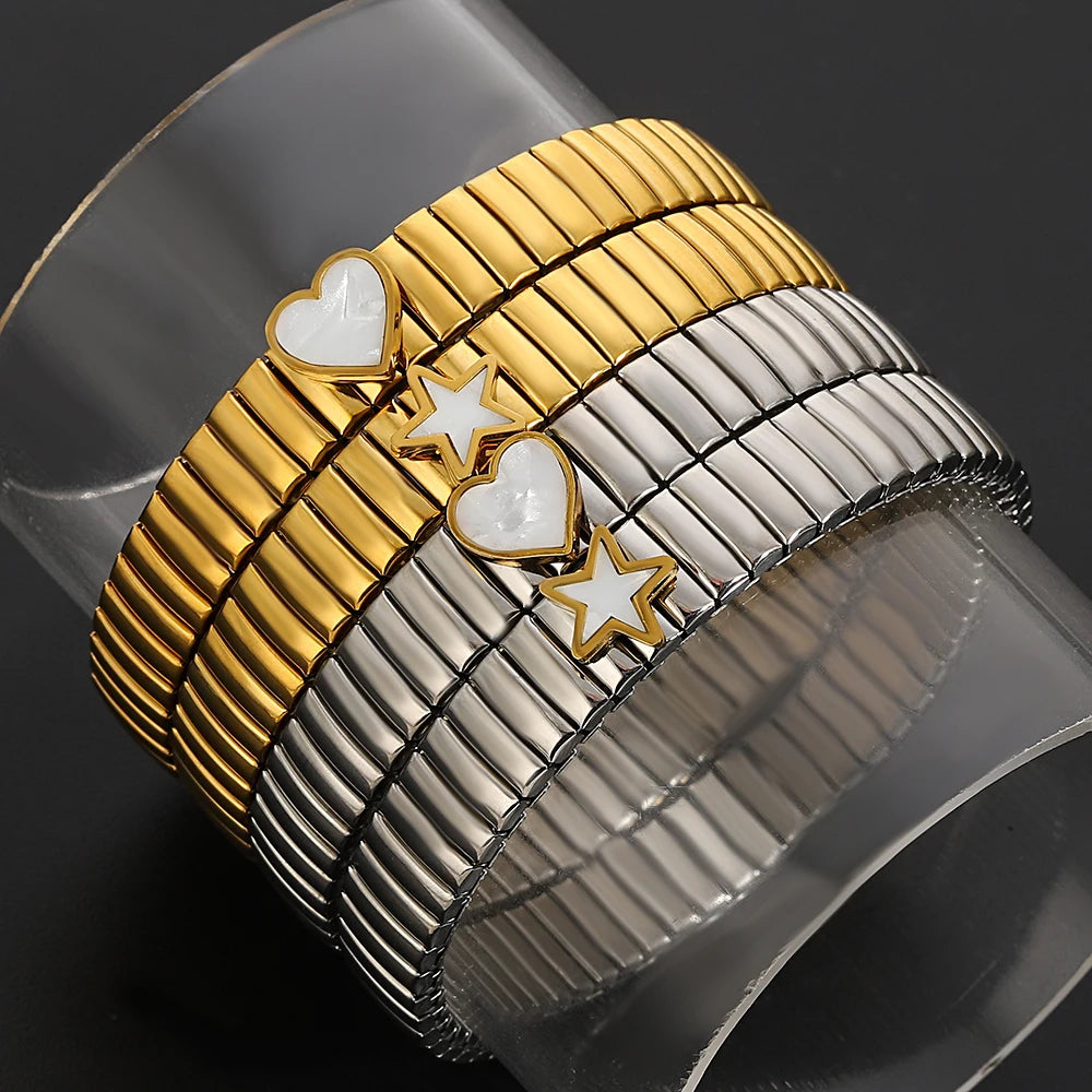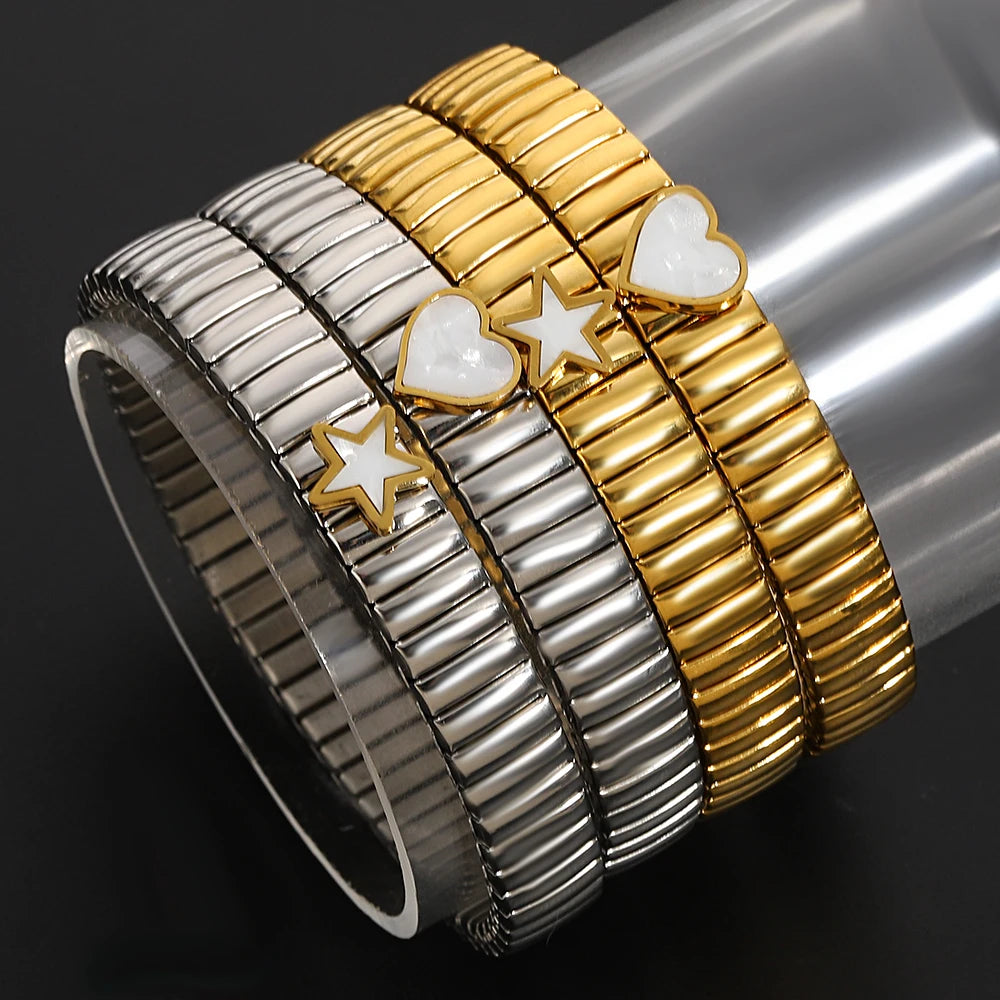 سوار مرن على شكل حلقة حب - سوار من الفولاذ المقاوم للصدأ بنمط نجمة