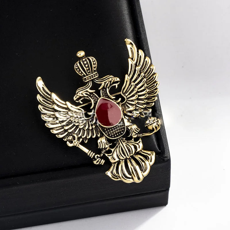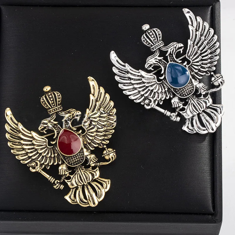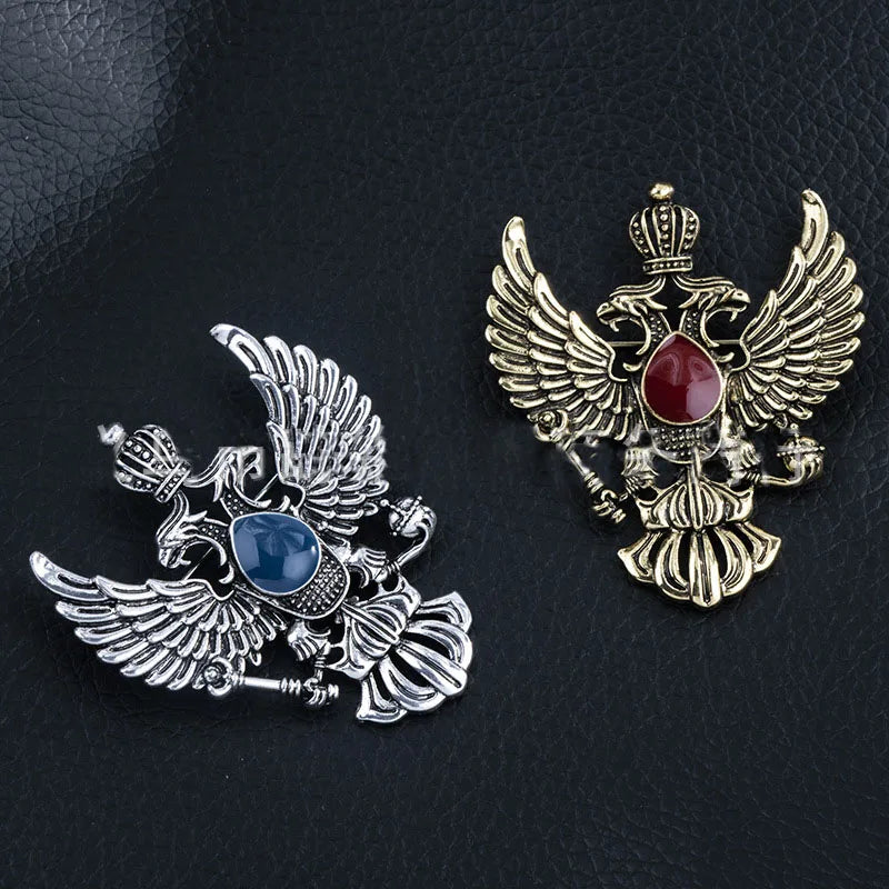 دبوس بروش على شكل نسر - دبوس ياقة شارة نسر برأسين عتيقين