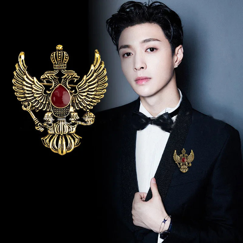 هذه الدبابيس والبروشات المعدنية بتصميم جناح، بتصميم كلاسيكي وفاخر، تتميز بشارة نسر برأسين عتيقين، مع دبوس ياقة بدلة تاج بانك. إكسسوارات رجالية مثالية.