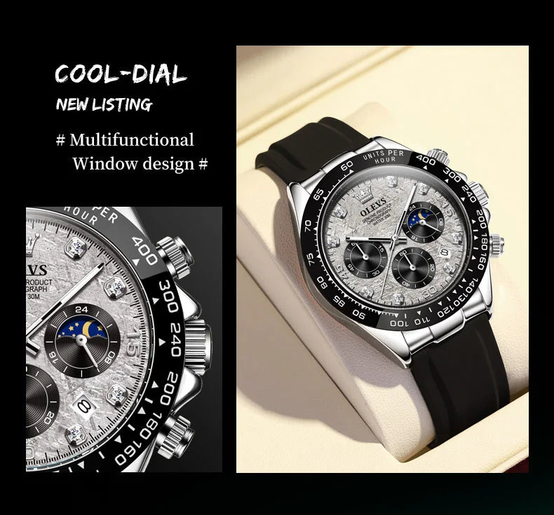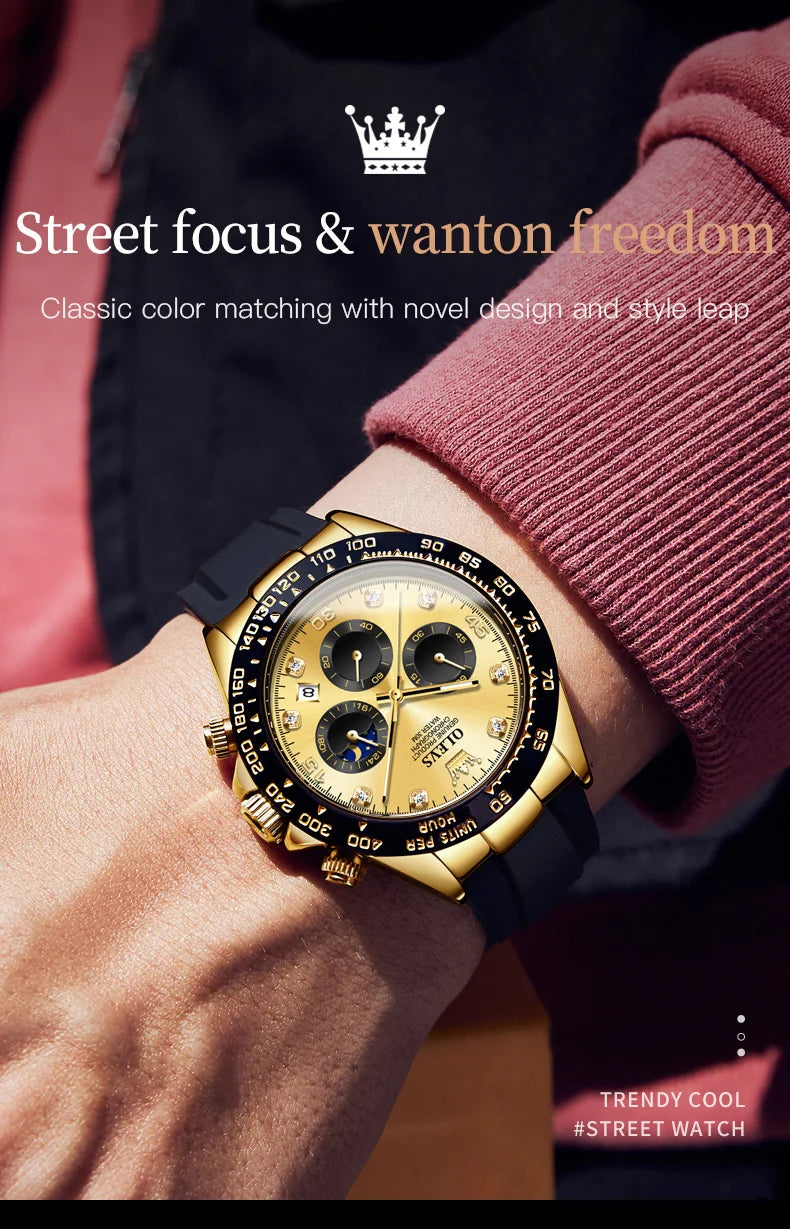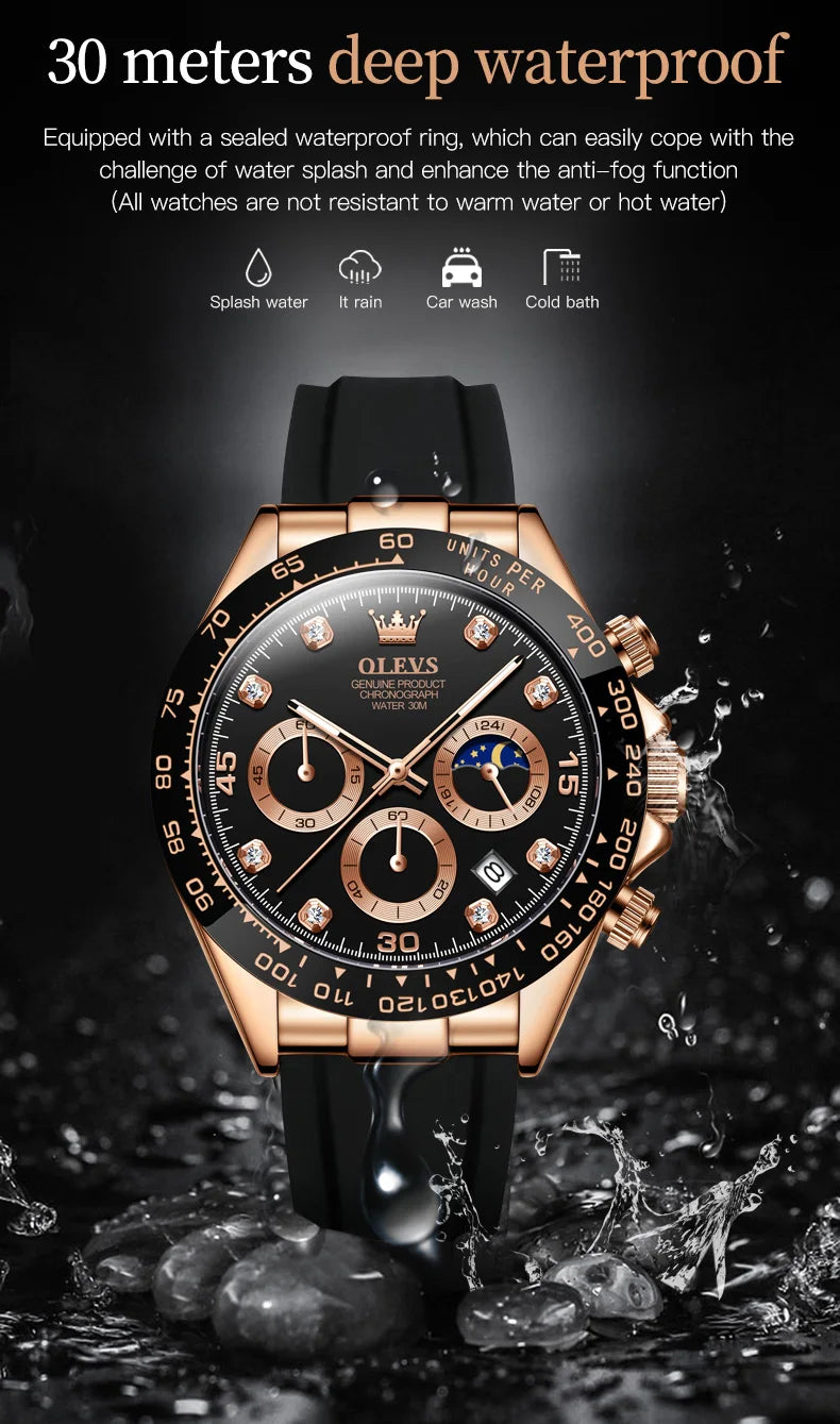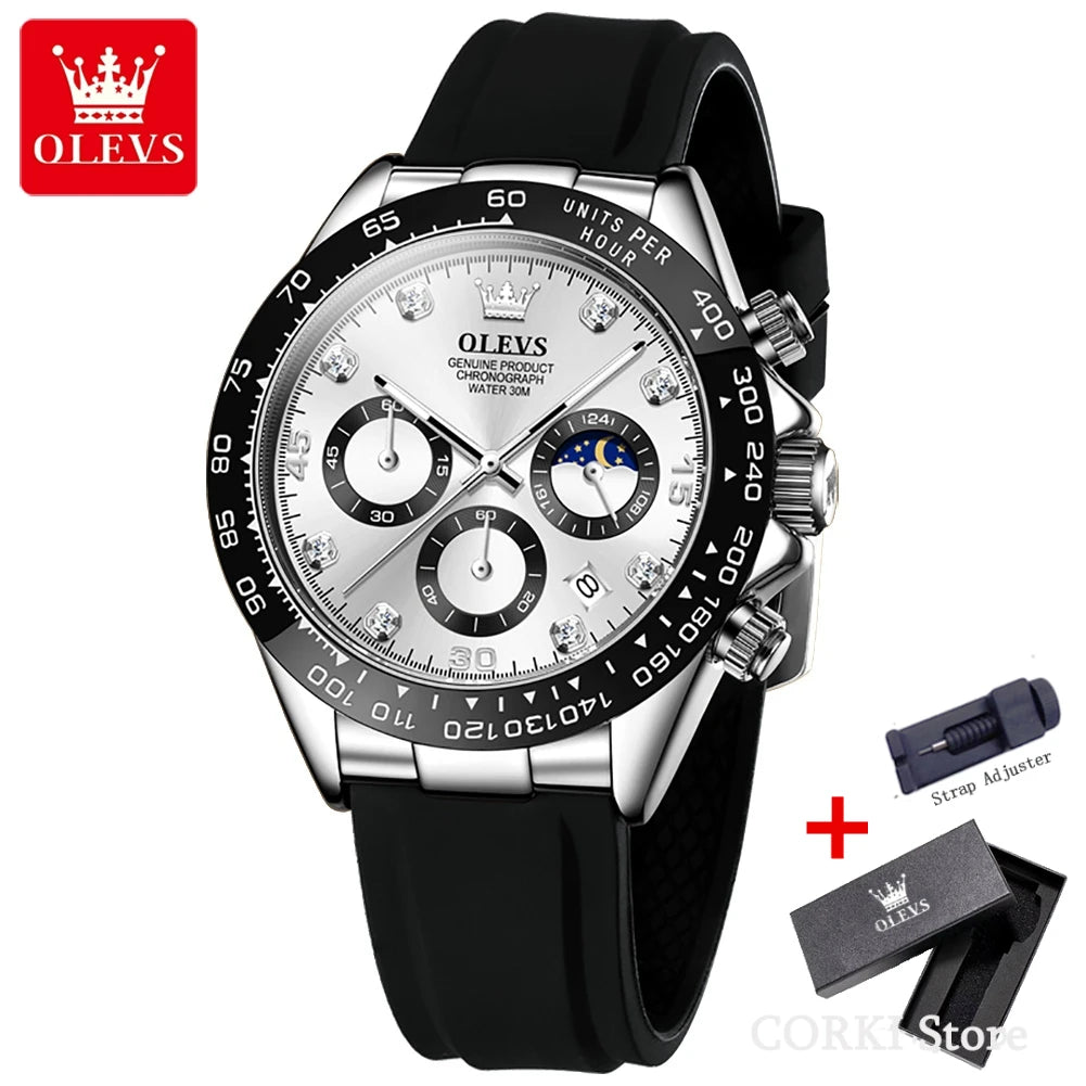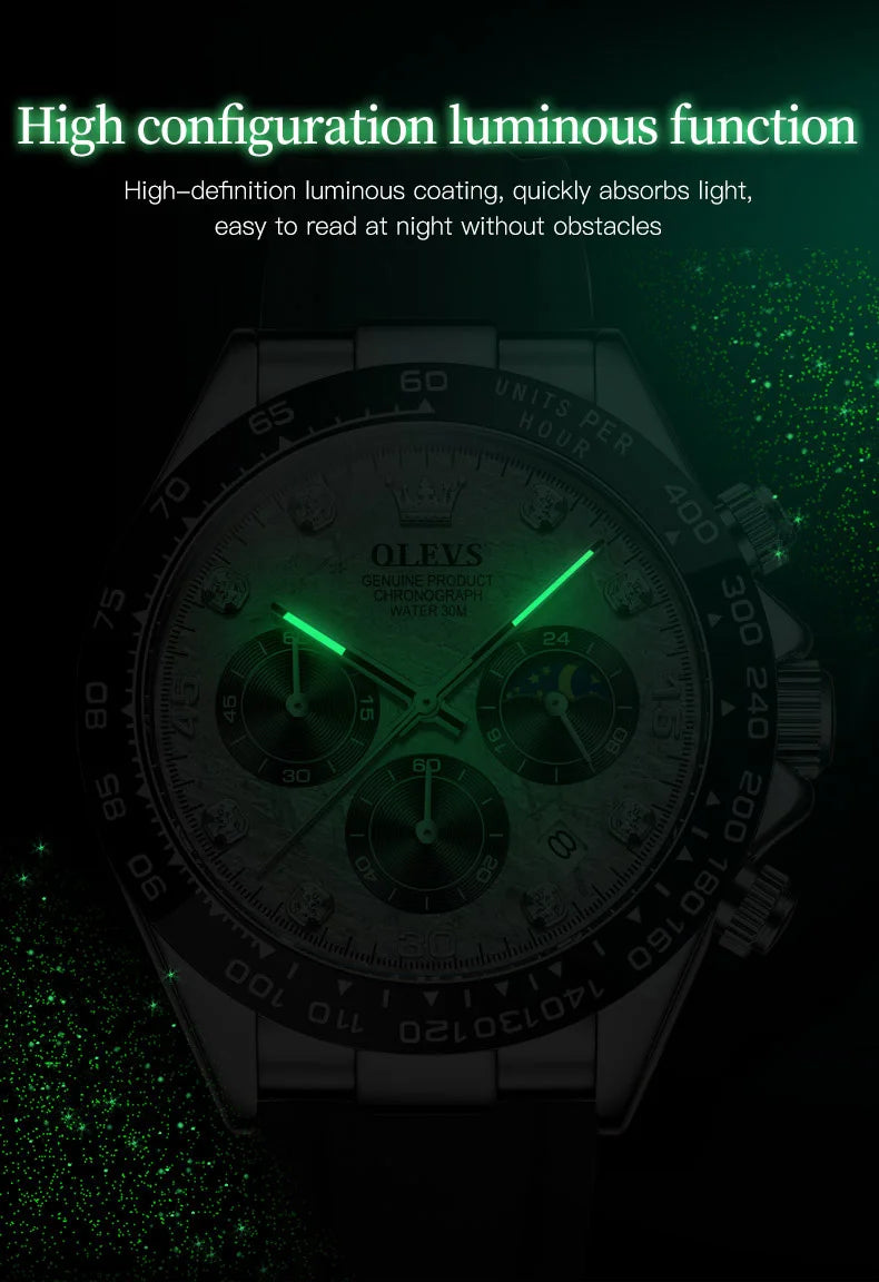 ساعة كوارتز فاخرة للرجال من OLEVS 2875 مقاومة للماء وتقويم رياضي ومؤقت ومضادة للصدمات ومضيئة للرجال