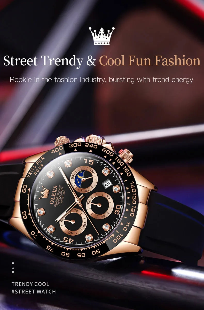 ساعة OLEVS 2875 كوارتز فاخرة ومتينة، تتميز بمؤقت رياضي مقاوم للماء مع تقويم، وتصميم مضيء مقاوم للصدمات. ساعة يد رجالية مثالية.