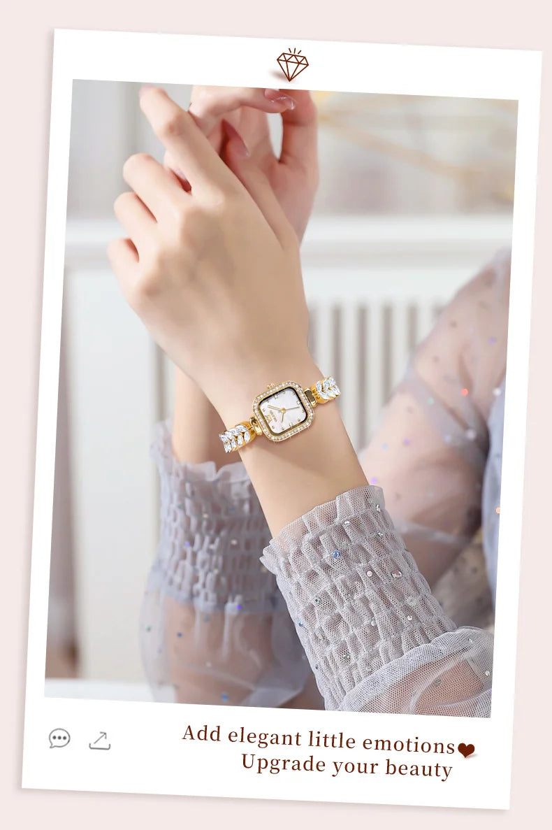 ساعة OLEVS 9987 النسائية - ساعة مربعة مقاومة للماء بسوار فولاذي