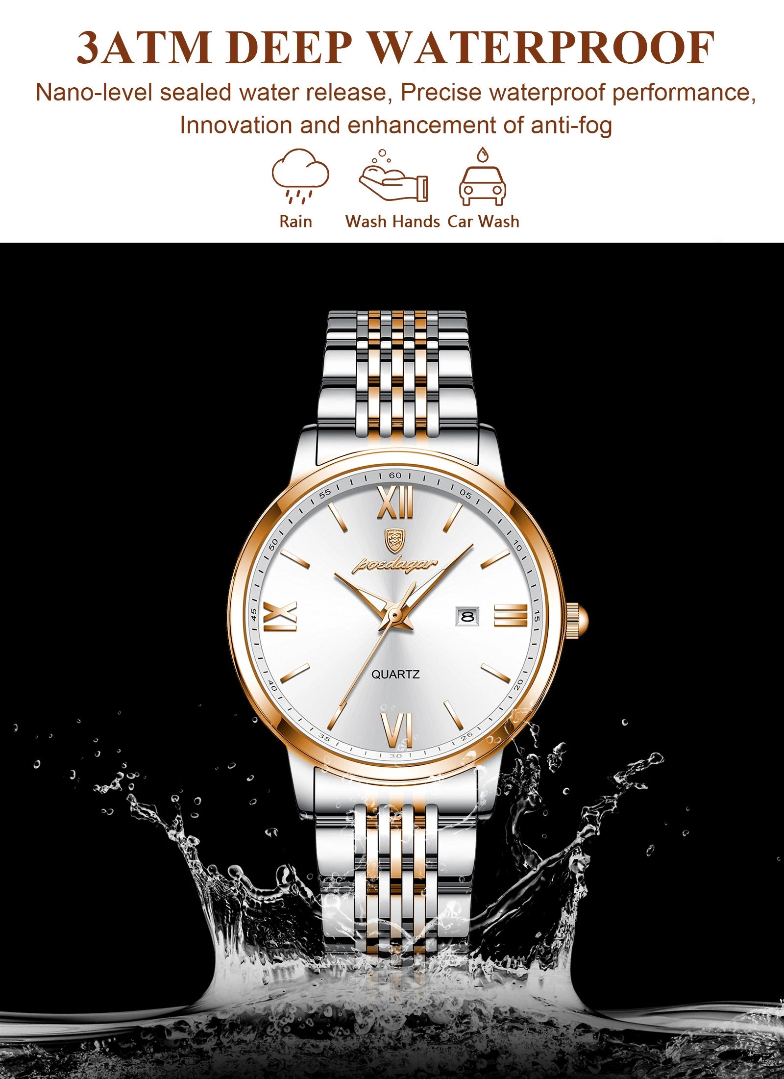 ساعة POEDAGAR فاخرة وعالية الجودة، تتميز بعرض تاريخ مضيء مقاوم للماء وهيكل من الكوارتز من الفولاذ المقاوم للصدأ.