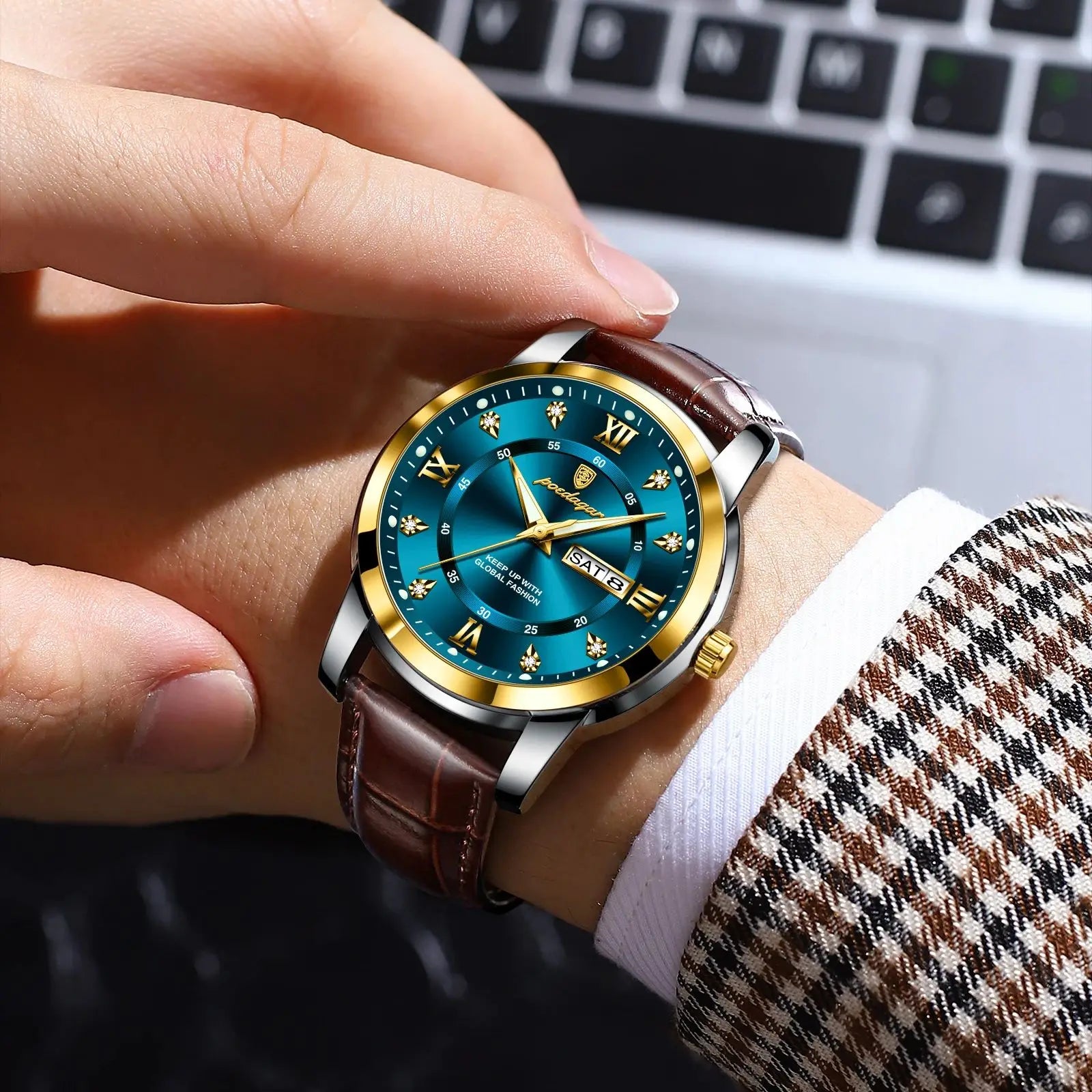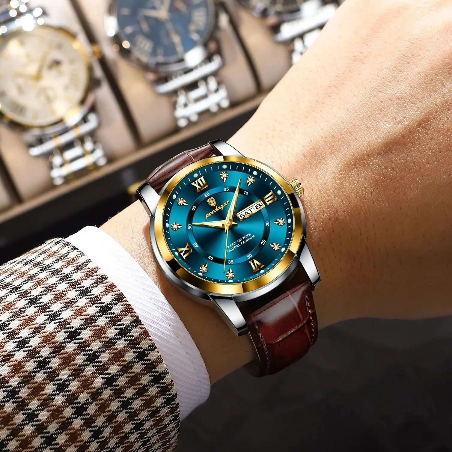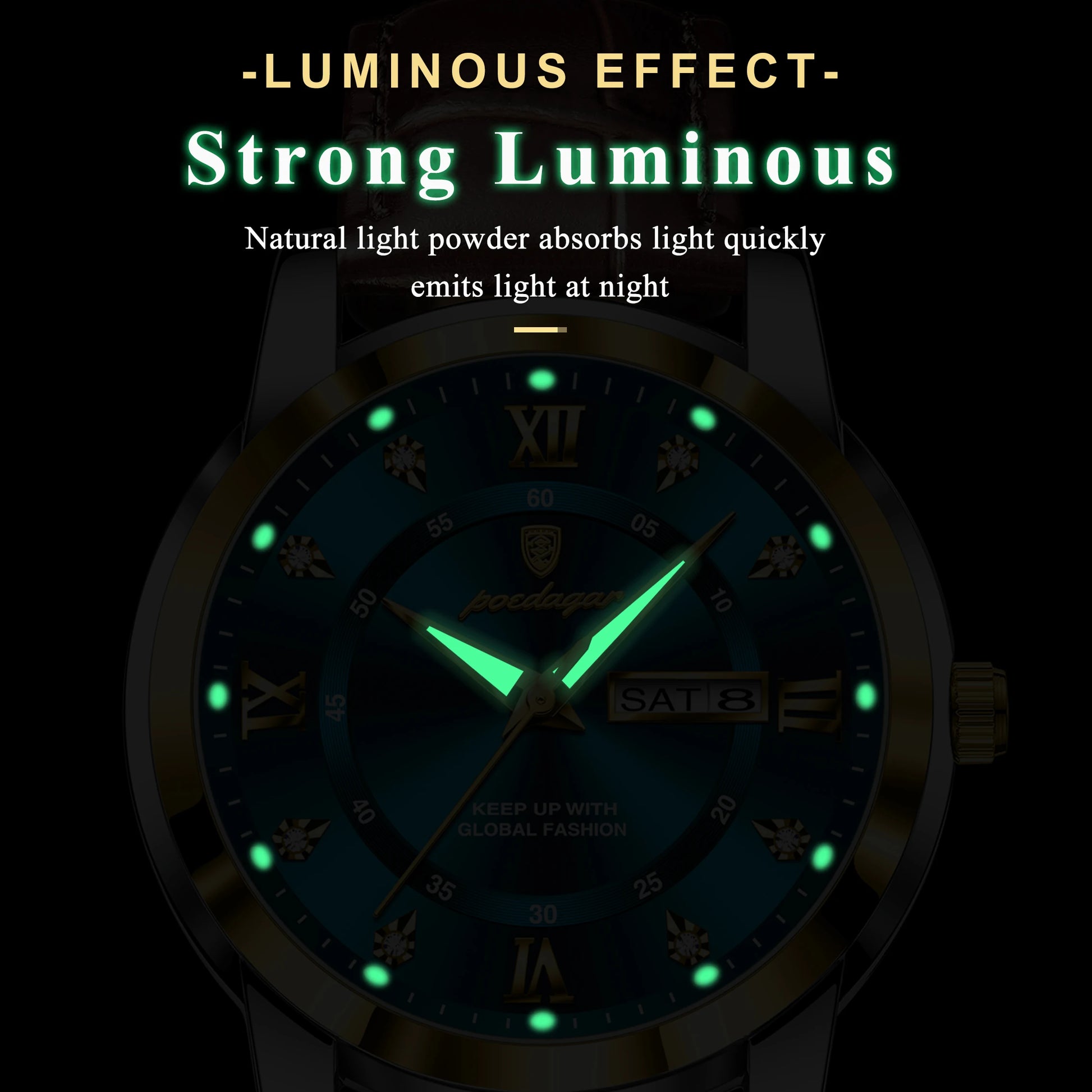 ساعة POEDAGAR الفاخرة للرجال، ساعة يد جلدية مضيئة مقاومة للماء، ساعة رجالية كاجوال رياضية، ساعات كوارتز للرجال