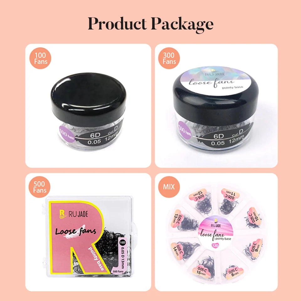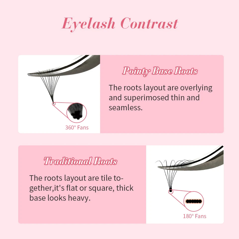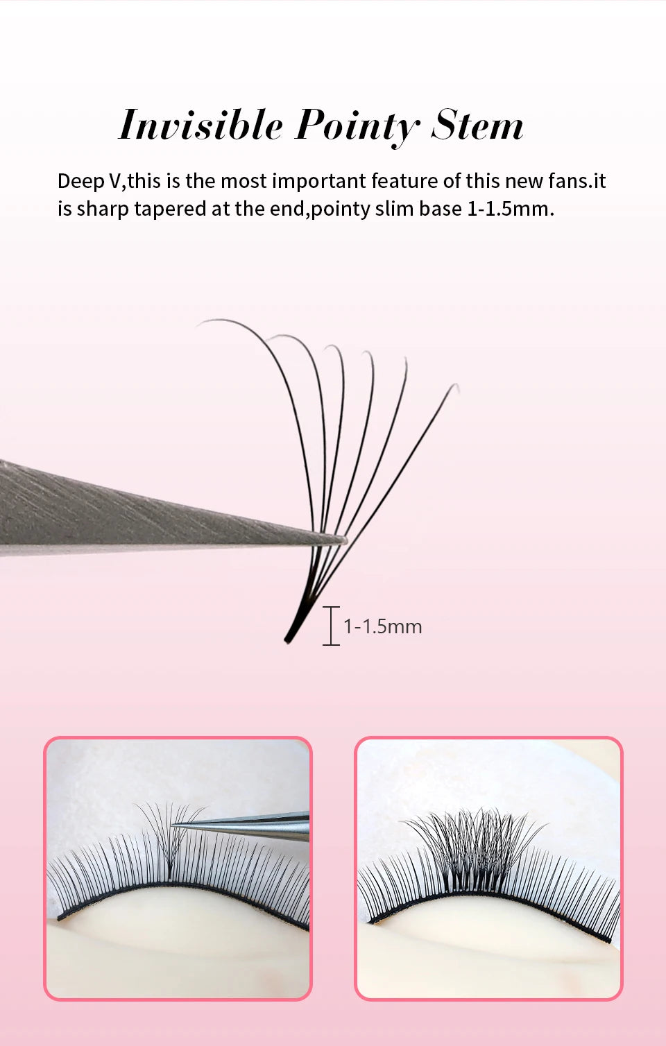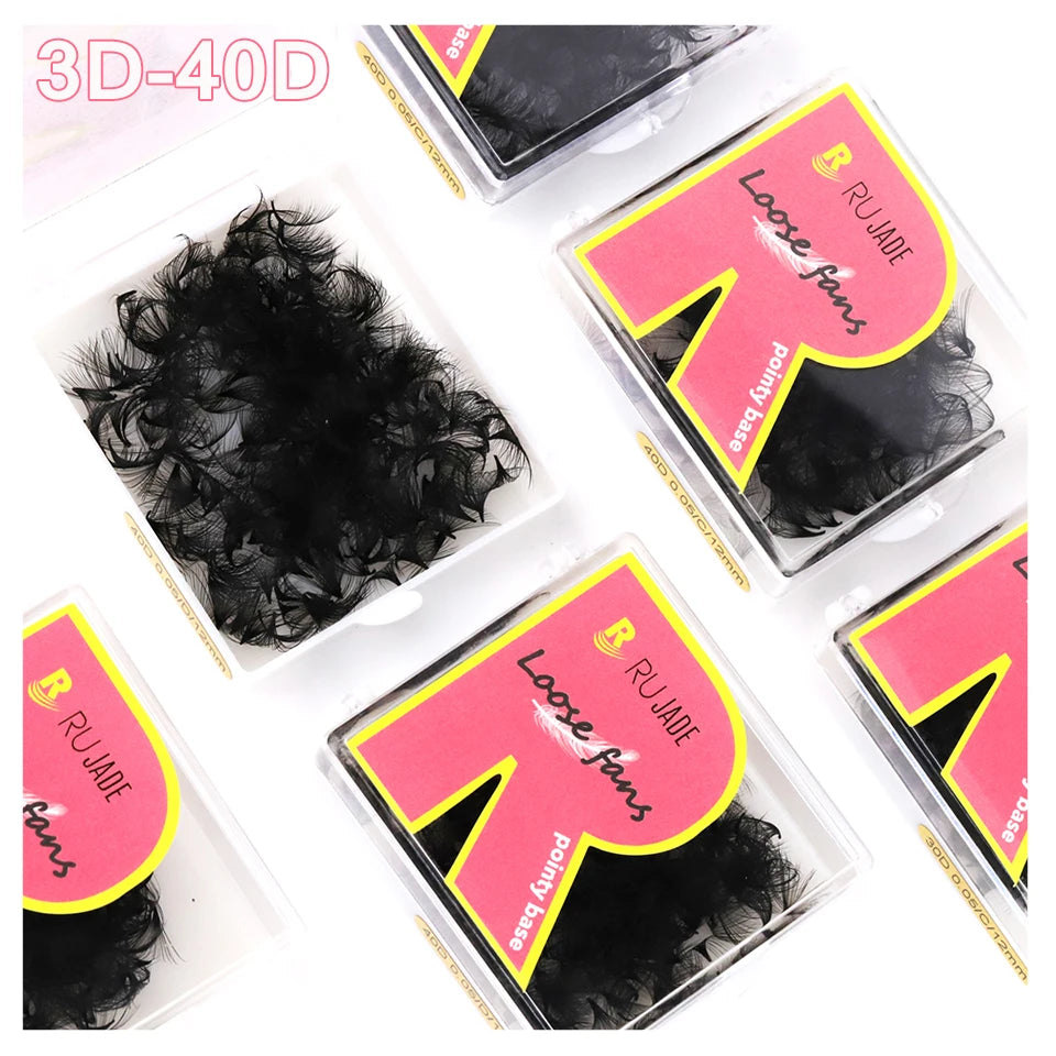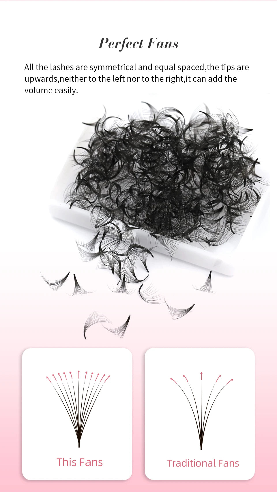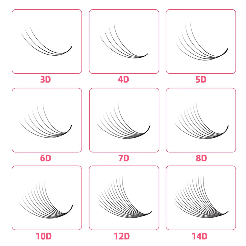 رموش صناعية احترافية جاهزة بمقاس 3D-40D لإطالة رموش كثيفة. ساق متوسطة بتصميم قاعدة مدببة لسهولة الاستخدام وكثافة مذهلة.