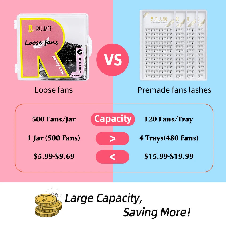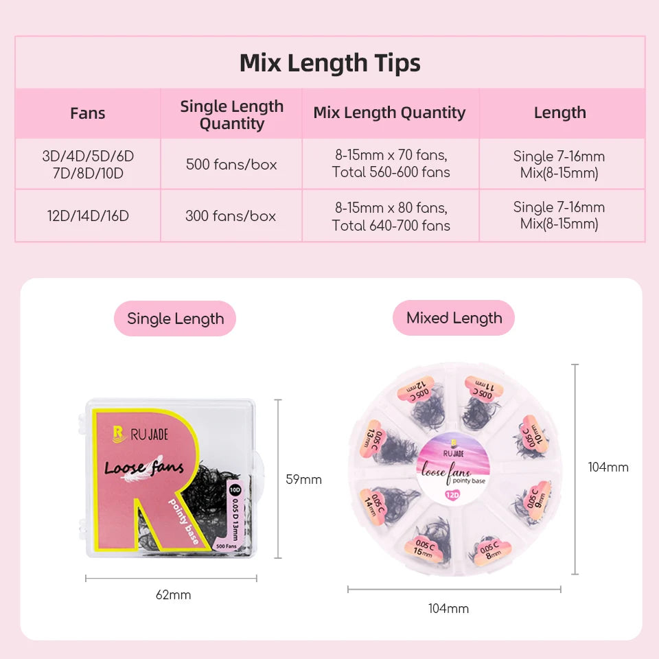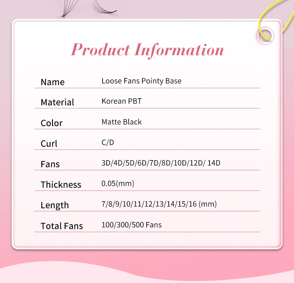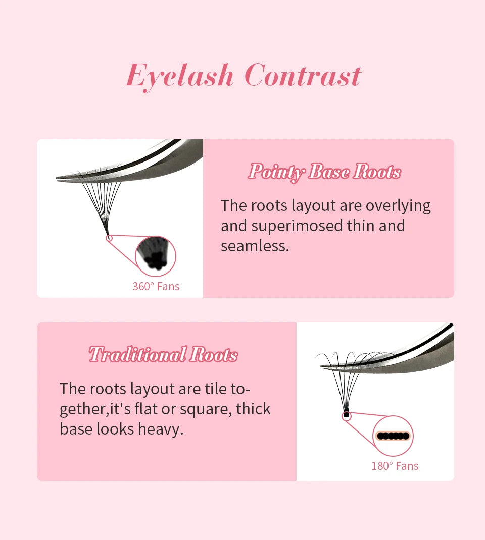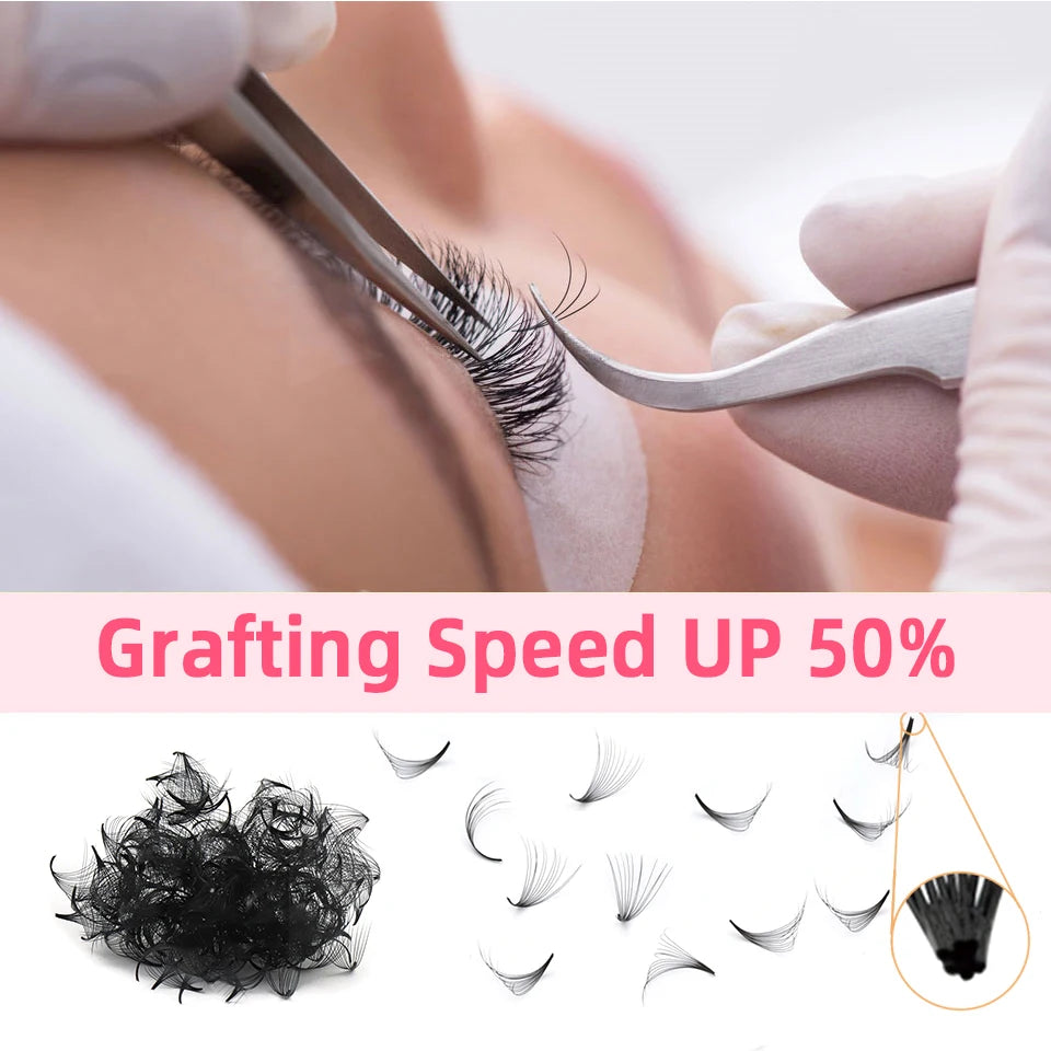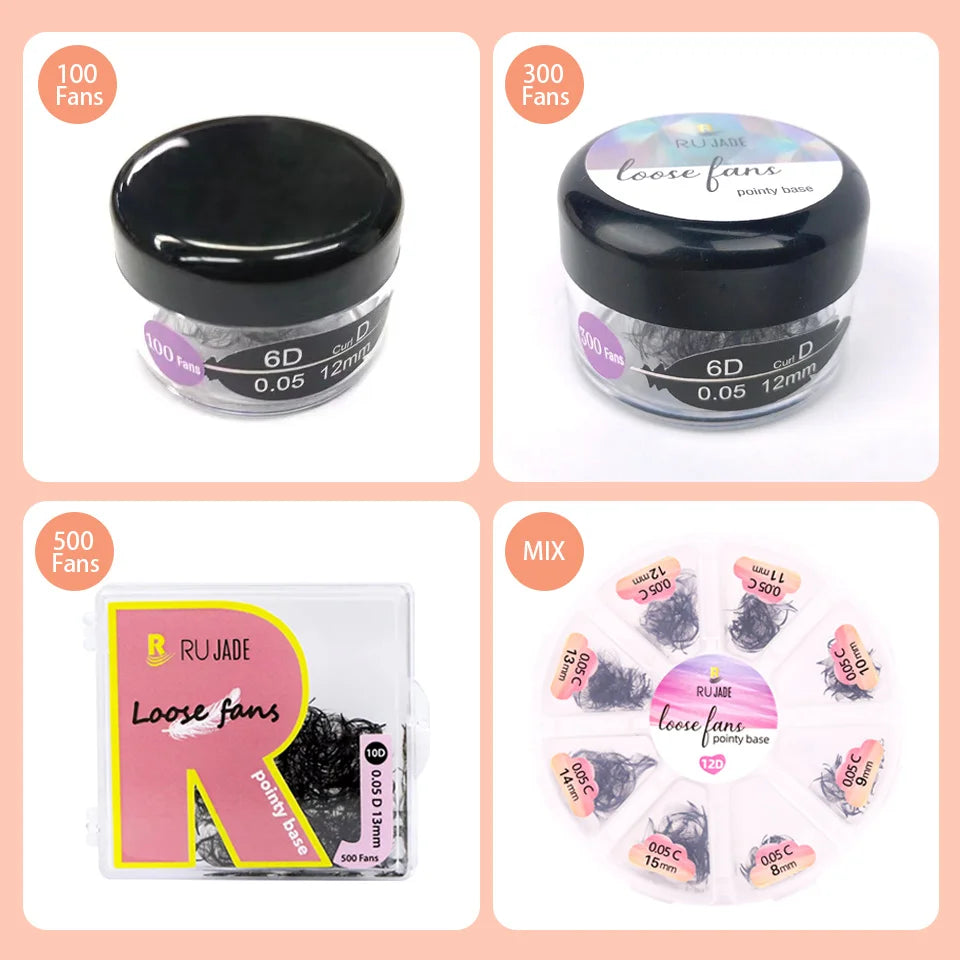 رموش صناعية احترافية جاهزة بمقاس 3D-40D لإطالة رموش كثيفة. ساق متوسطة بتصميم قاعدة مدببة لسهولة الاستخدام وكثافة مذهلة.