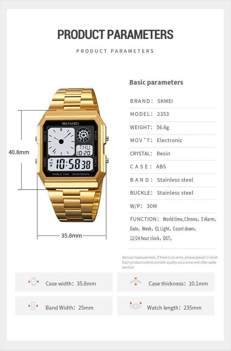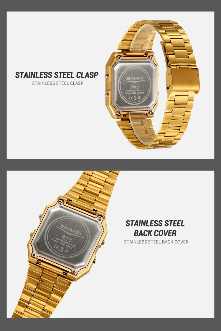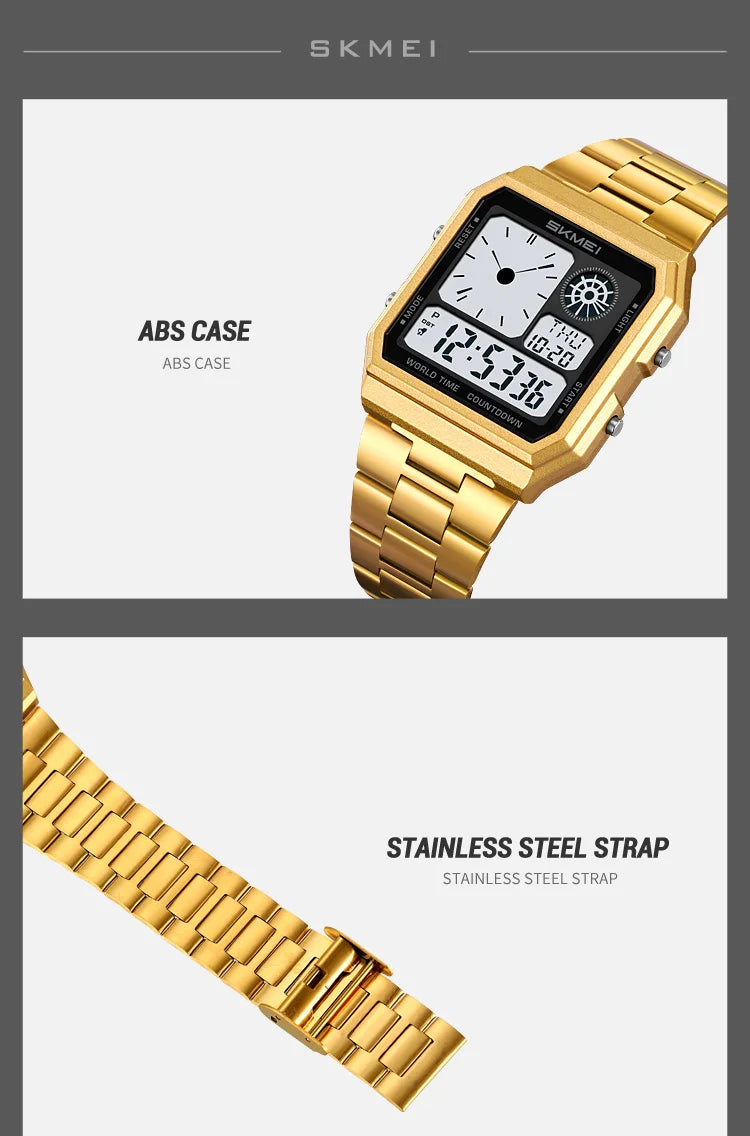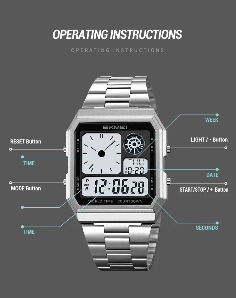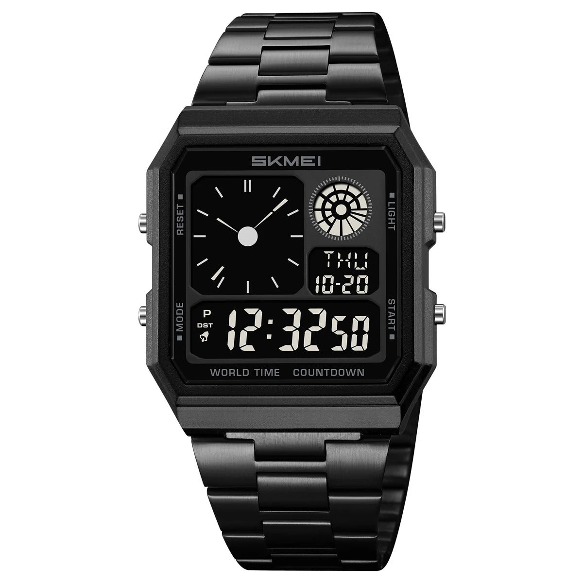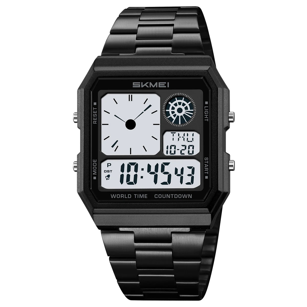 ساعة سكمي الإلكترونية الرقمية العالمية للرجال والنساء مقاومة للماء والرياضات الخارجية بسوار من الفولاذ المقاوم للصدأ ساعات يد للرجال