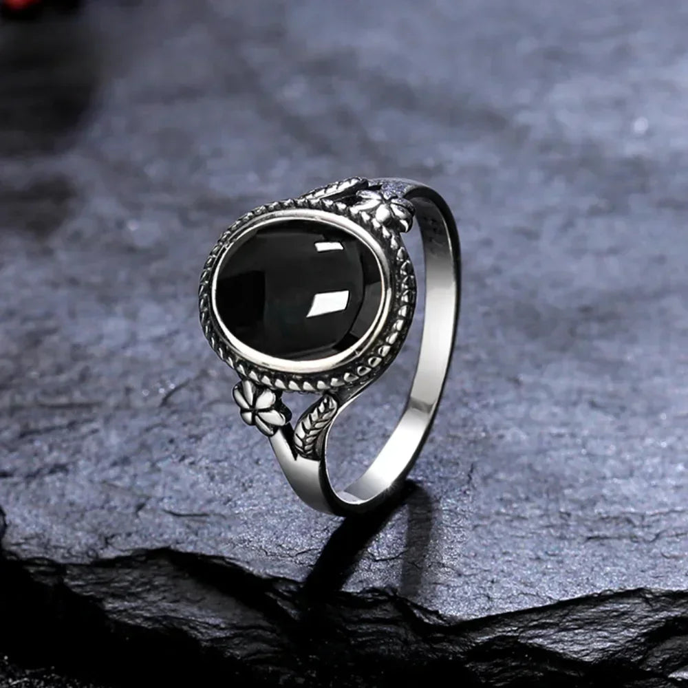 خاتم عين النمر - خاتم إصبع السبابة من الفضة 925 بتصميم زهرة عتيقة