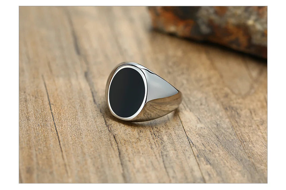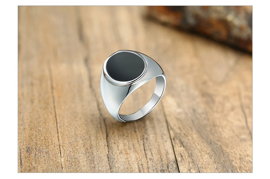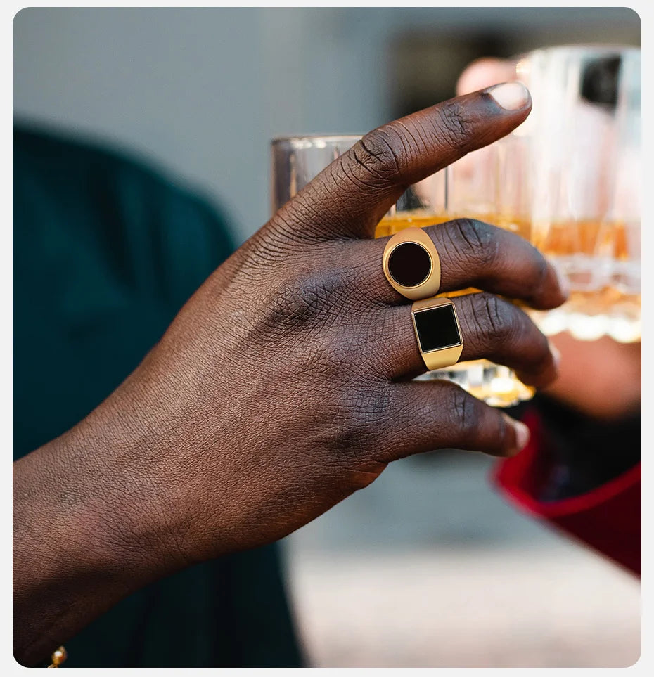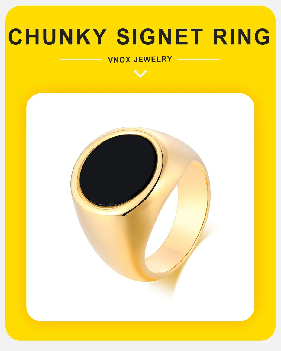 خاتم رجالي أنيق من Vnox بتصميم مربع دائري من الفولاذ المقاوم للصدأ. خاتم مثالي للأخوة الرجالية بطابع البانك روك.