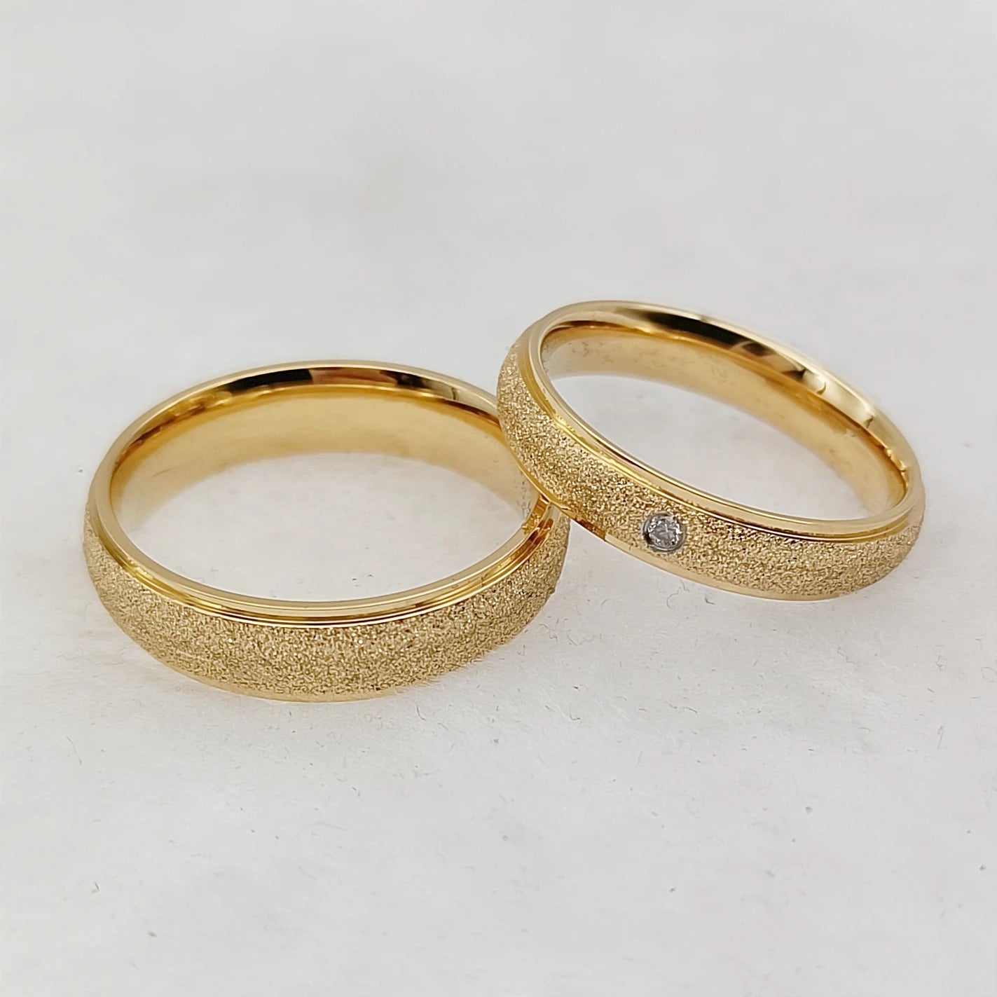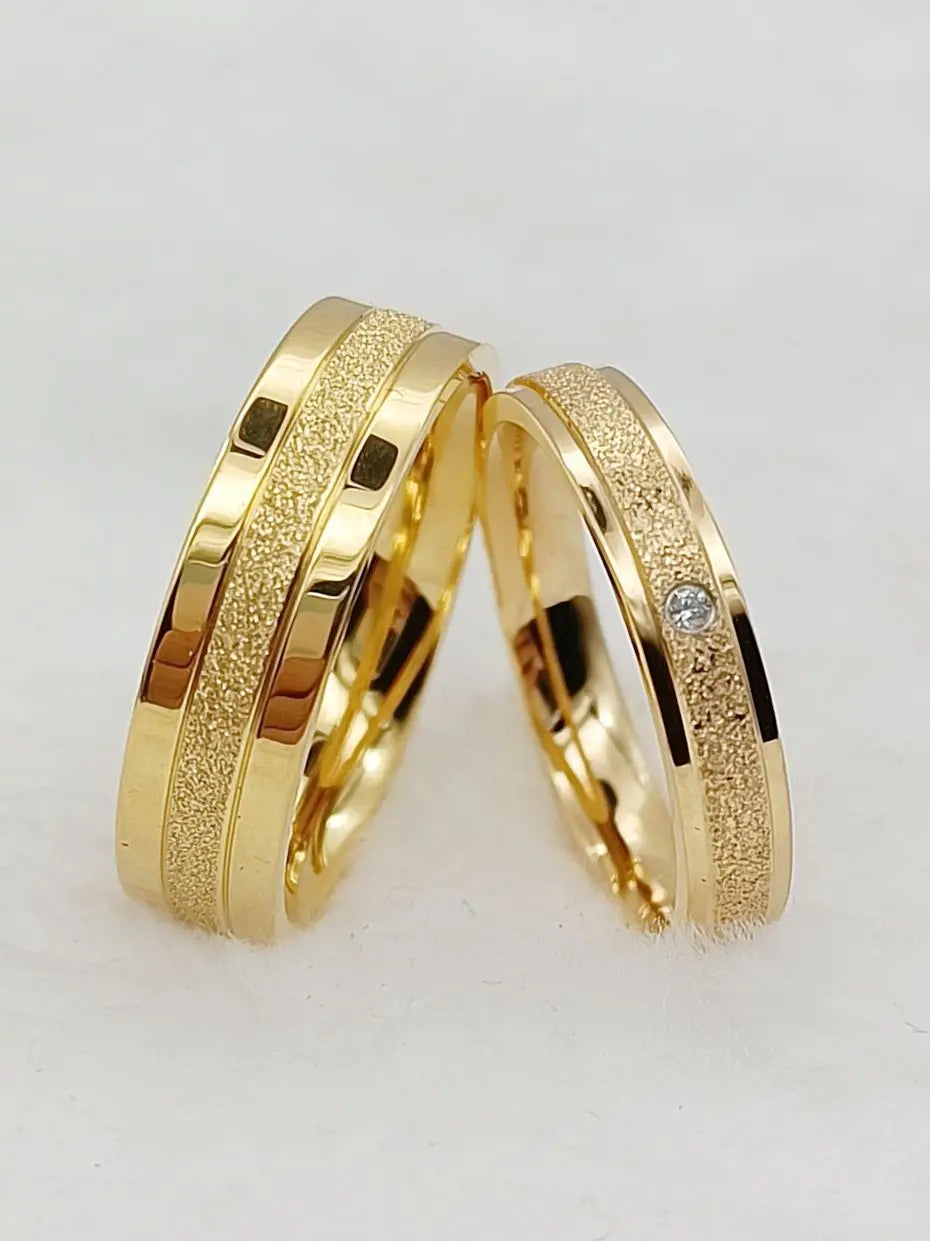 مجموعة خواتم الزفاف - خواتم تيتانيوم مطلية بالذهب عيار 24 قيراطًا