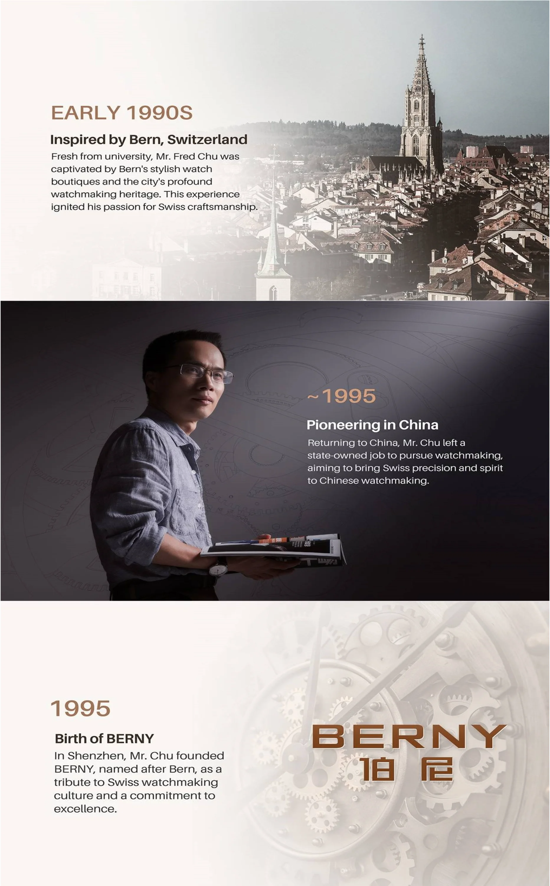 Alliant aviation et luxe, cette montre chronographe BERNY est dotée d'un mouvement à quartz multifonction avec affichage de la date, d'un verre saphir et d'une finition super-luminescente. La montre-bracelet de luxe idéale pour homme.