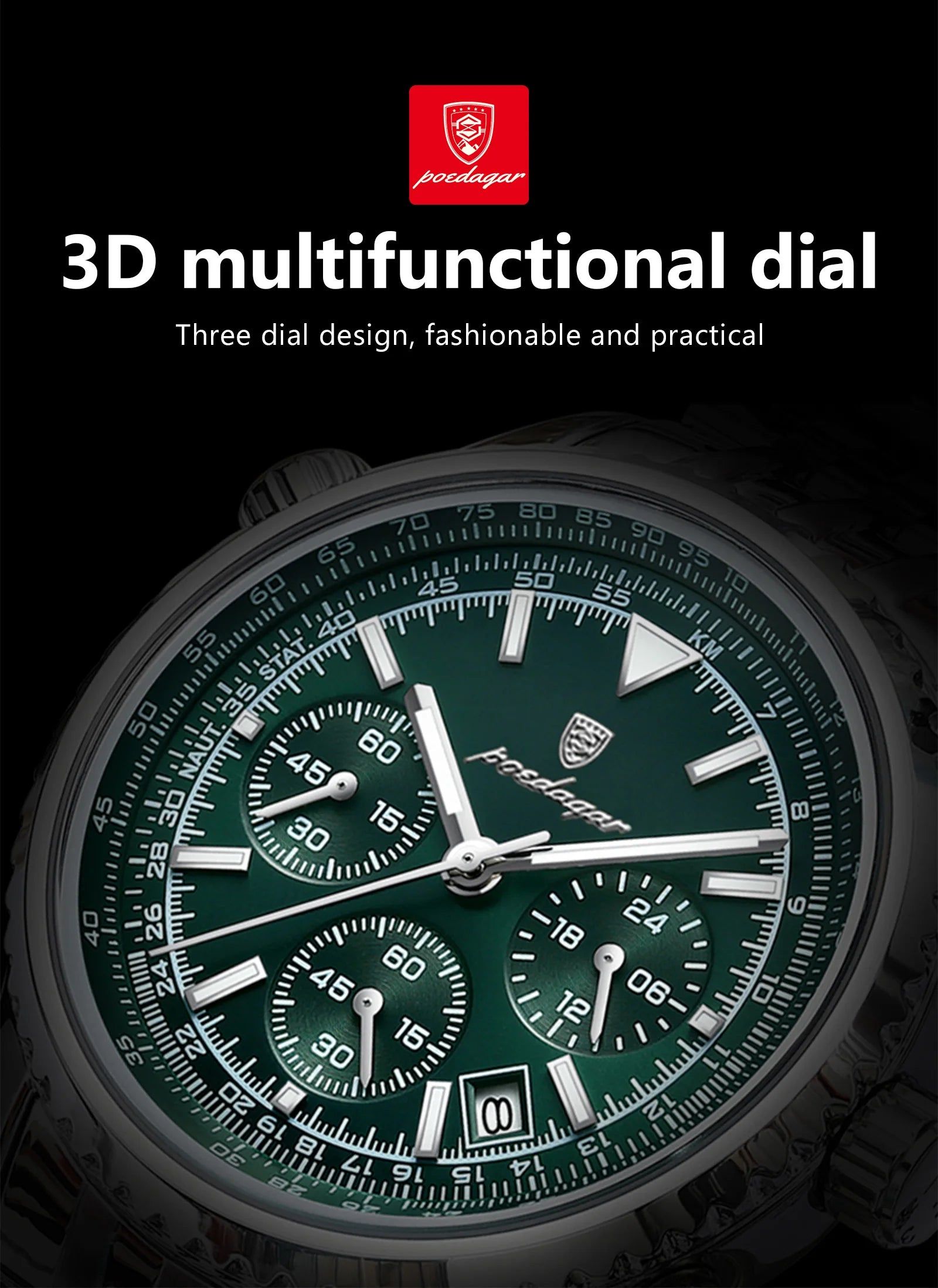 Montre-bracelet POEDAGAR pour homme, étanche, lumineuse, avec date et chronographe, de luxe, à quartz, en acier inoxydable.