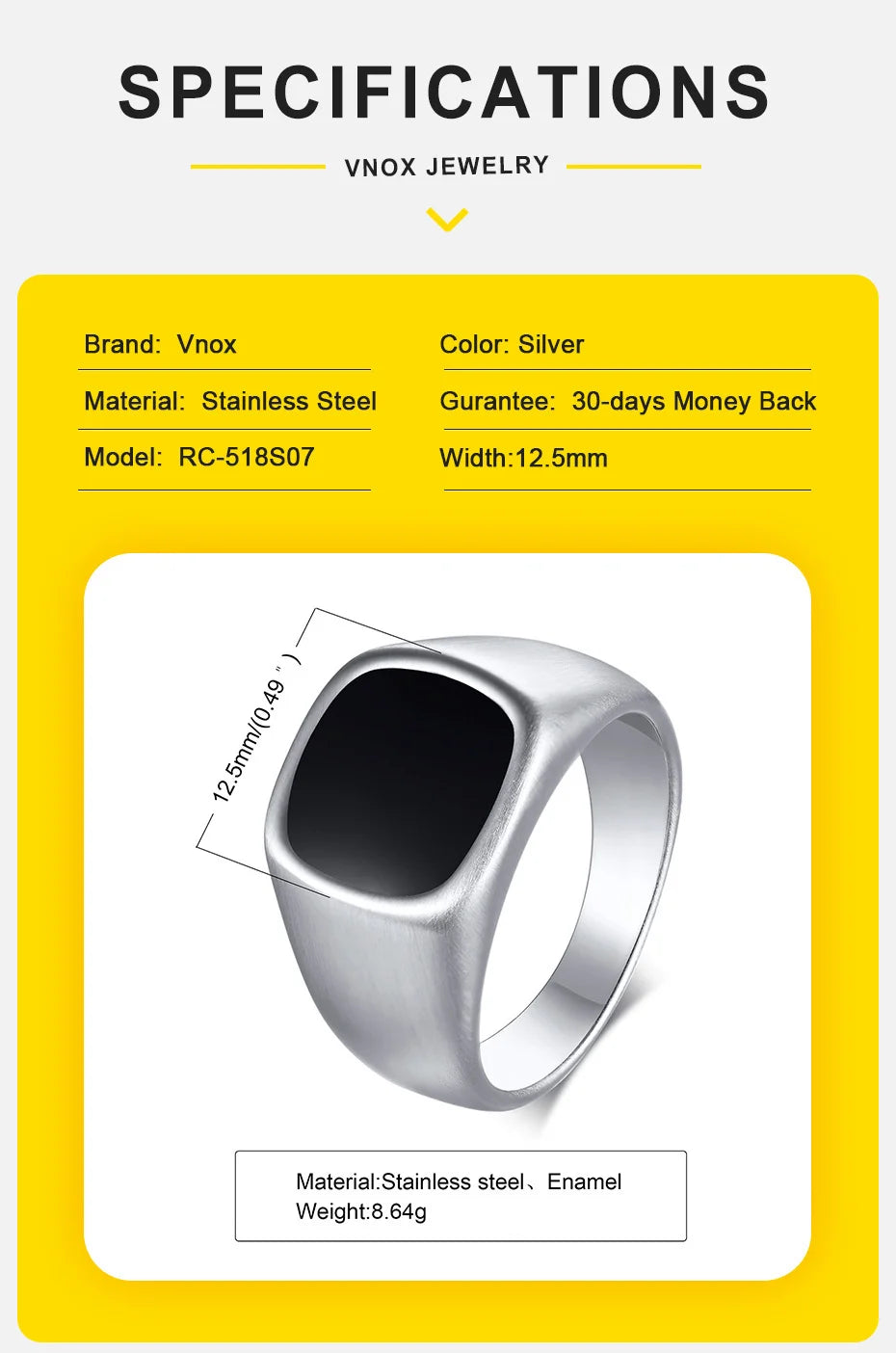 Chevalière pour homme - Vnox 12,5 mm, anneau carré en acier inoxydable noir