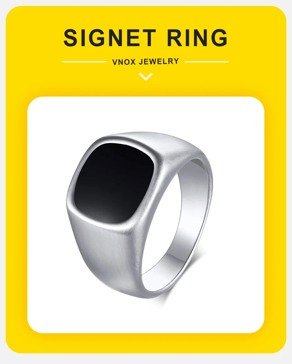 Audacieuse et gothique, cette chevalière Vnox de 12,5 mm présente un anneau en acier inoxydable noir à dessus carré. Bague idéale pour un look punk rock gothique.