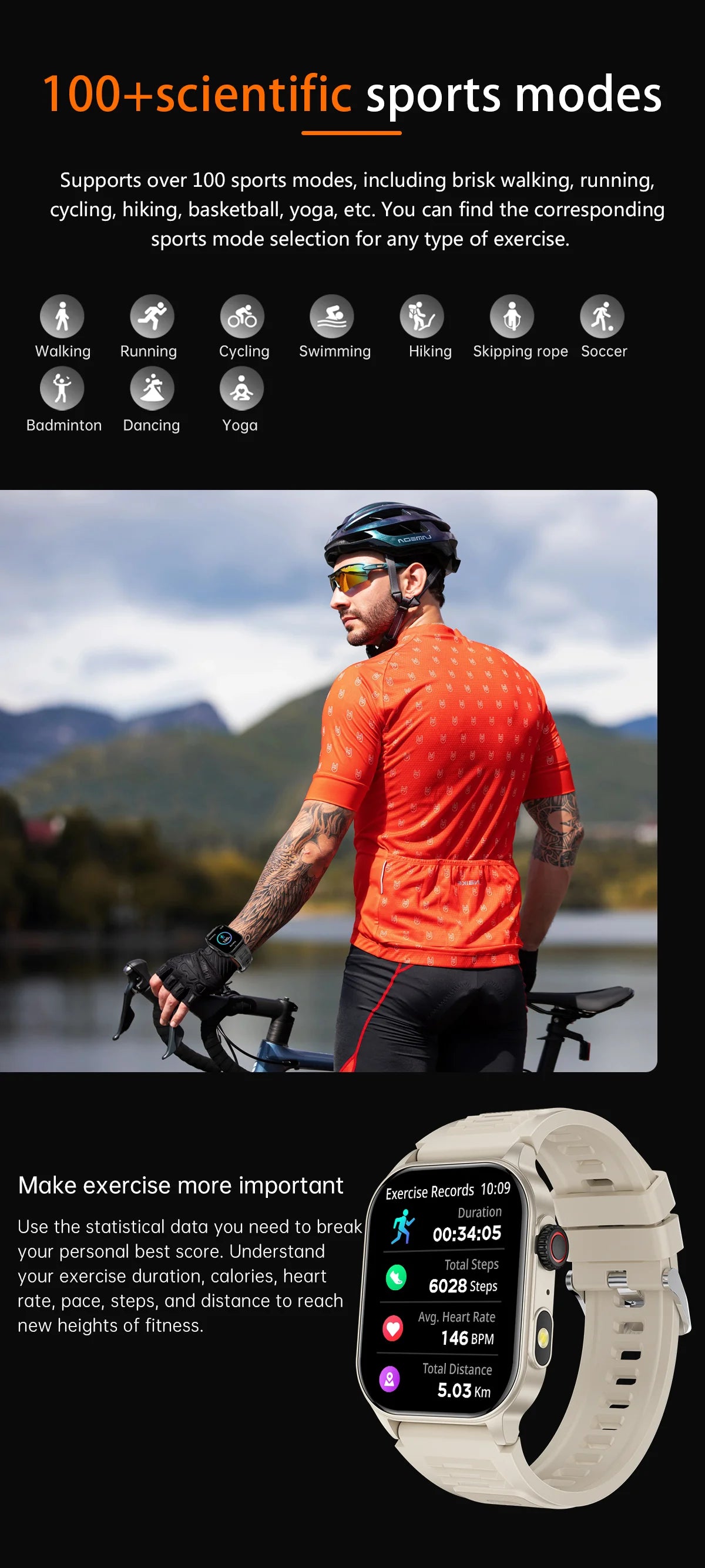 Advanced LIGE smart watch with flashlight, 2.01" HD display, AI voice, Bluetooth call, and health monitor. Perfect sports watches smartwatch for men and women.
